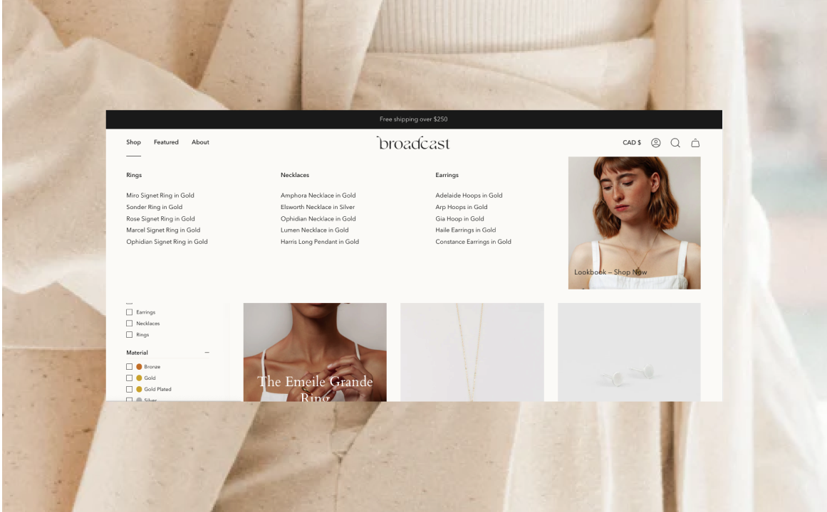 Take the hassle out of navigation with Broadcast's MegaNav feature. This dynamic, customizable navigation menu simplifies the user journey, making it easier for customers to find what they're looking for, thereby increasing conversions and sales.