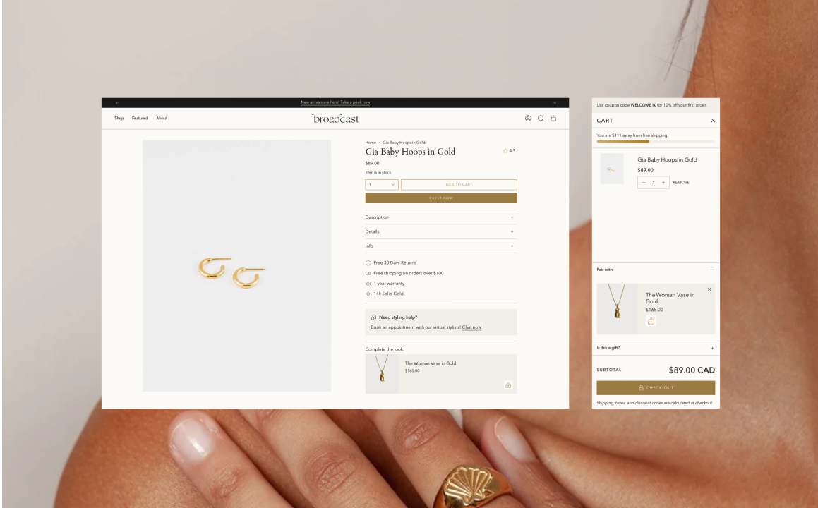Utilize Broadcast's built-in upselling features to strategically display related products on both the product and cart pages. Encourage customers to add more to their cart, increasing your average order value.
